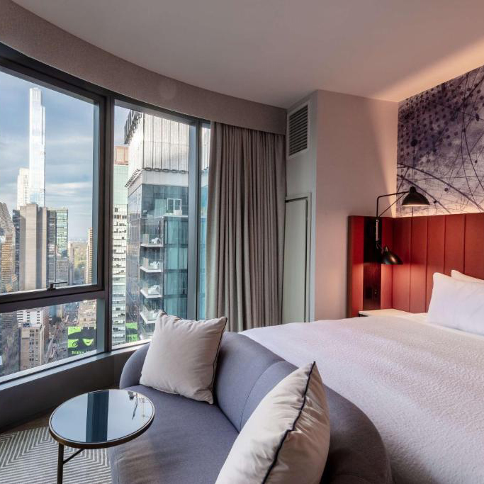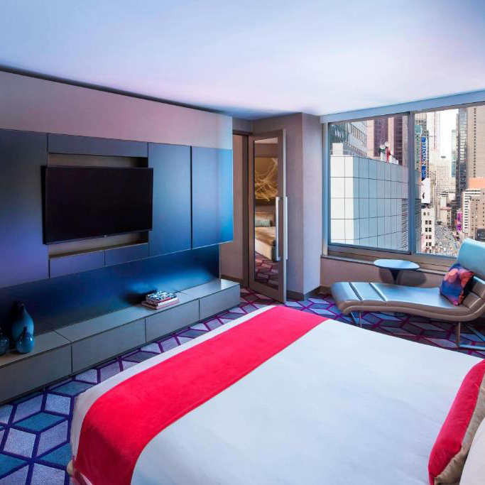 Le W c’est la définition même de « l’expérience Times Square ». Du haut de sa tour de 57 étages, directement situé sur Broadway, l’hôtel est au cœur de l’action et de l’effervescence de New York. Avec sa décoration moderne et futuriste, les chambres sont de vrais cocons urbains à l’atmosphère vibrante et aux couleurs de Times Square.