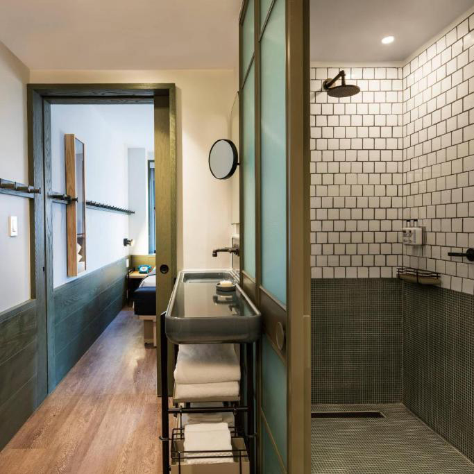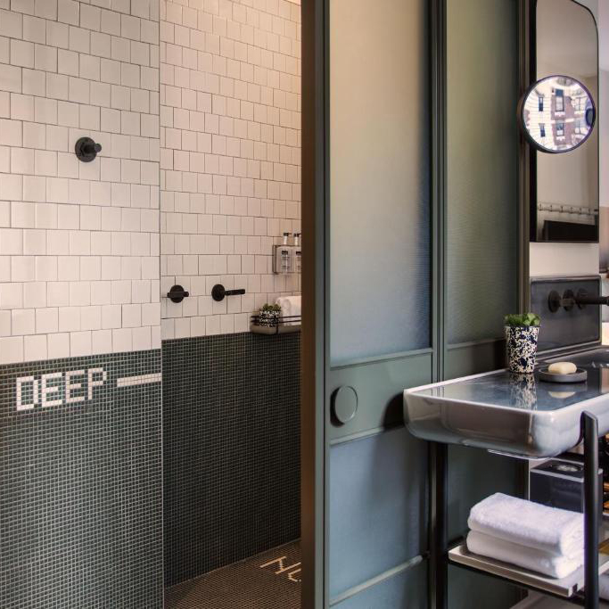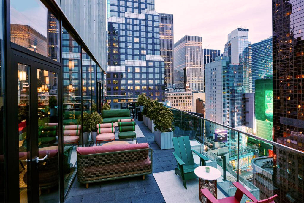 Installé dans un bâtiment centenaire de 57 étages, repensé par Yabu Pushelberg, on y retrouve cette ambiance vibrante et énergique typique du quartier de Times Square. Il est surmonté par Magic Hour, un grand rooftop aux vues spectaculaires sur l’Empire State Building et Manhattan. On y retrouve même, un véritable barbershop avec cocktail gratuit !