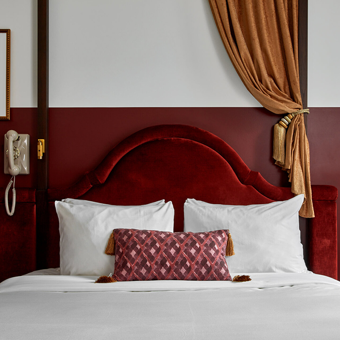 Même les chambres sont conçues pour évoquer les loges backstage des acteurs à la décoration théâtrale soignée.