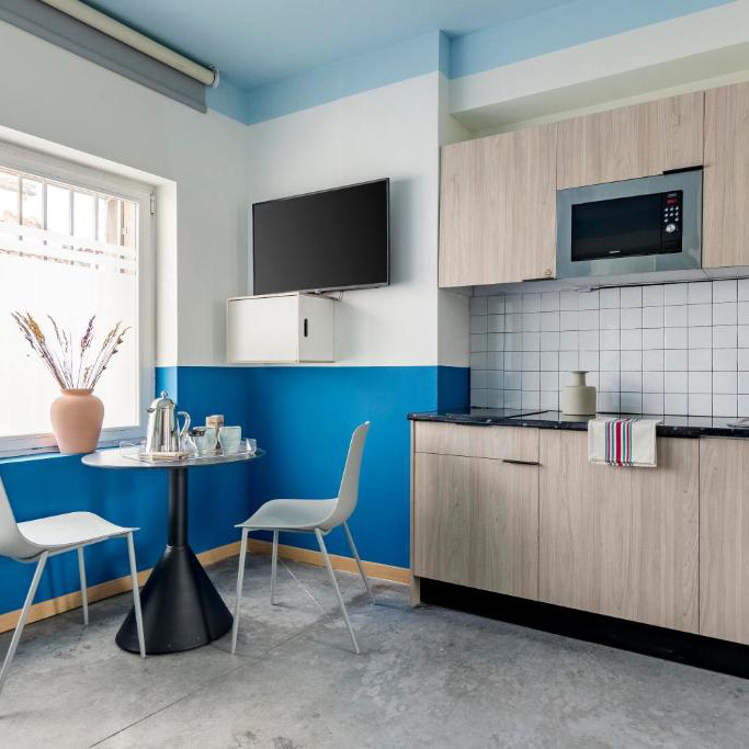 L’établissement compte seulement 12 studios, ce qui crée une atmosphère intimiste et authentique. Et chaque studio a ainsi été pensé pour maximiser votre confort dans un espace optimisé.
