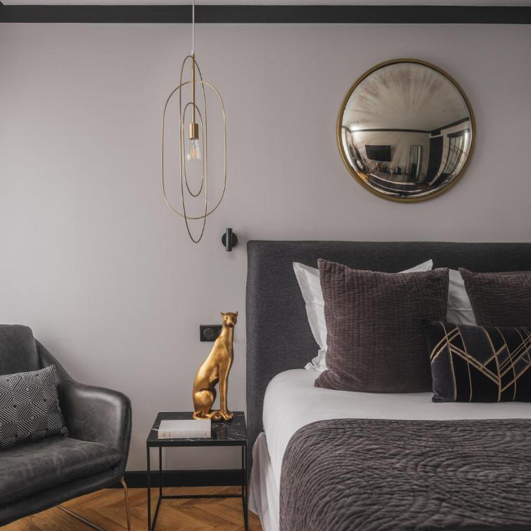 En effet, après 2 ans de travaux méticuleux, seule la façade du XIXème subsiste et chaque détail a été pensé comme un cabinet de curiosités, créant une expérience hors du temps portée par l’amour de l’art et du voyage dans l’un des meilleurs hôtels à Nantes.